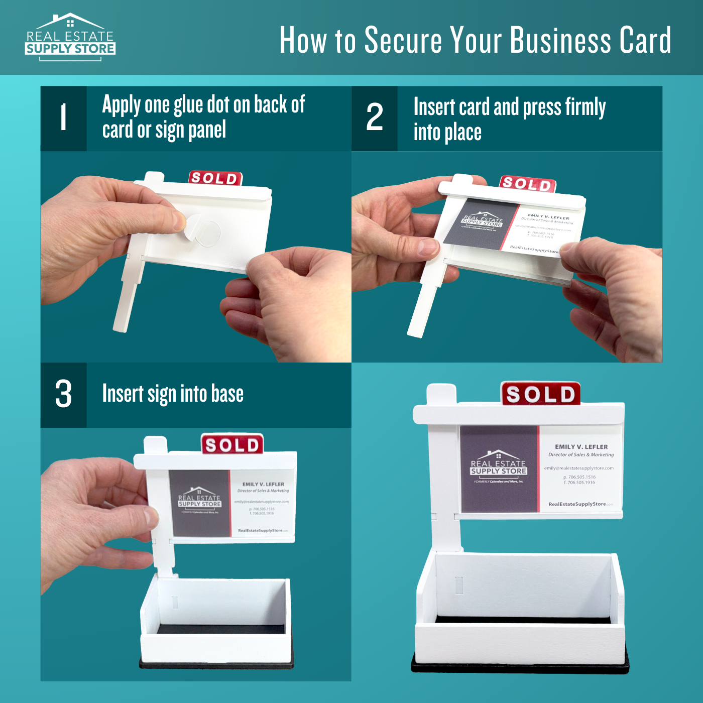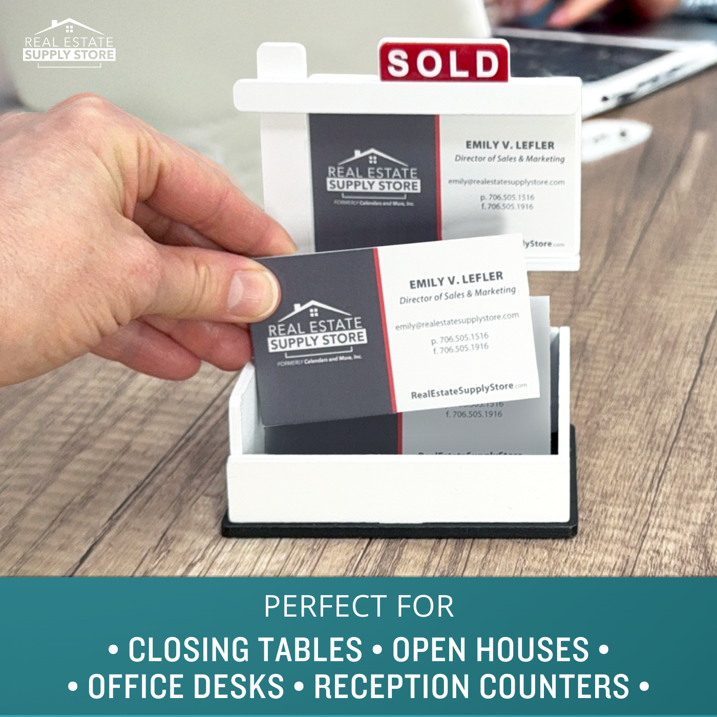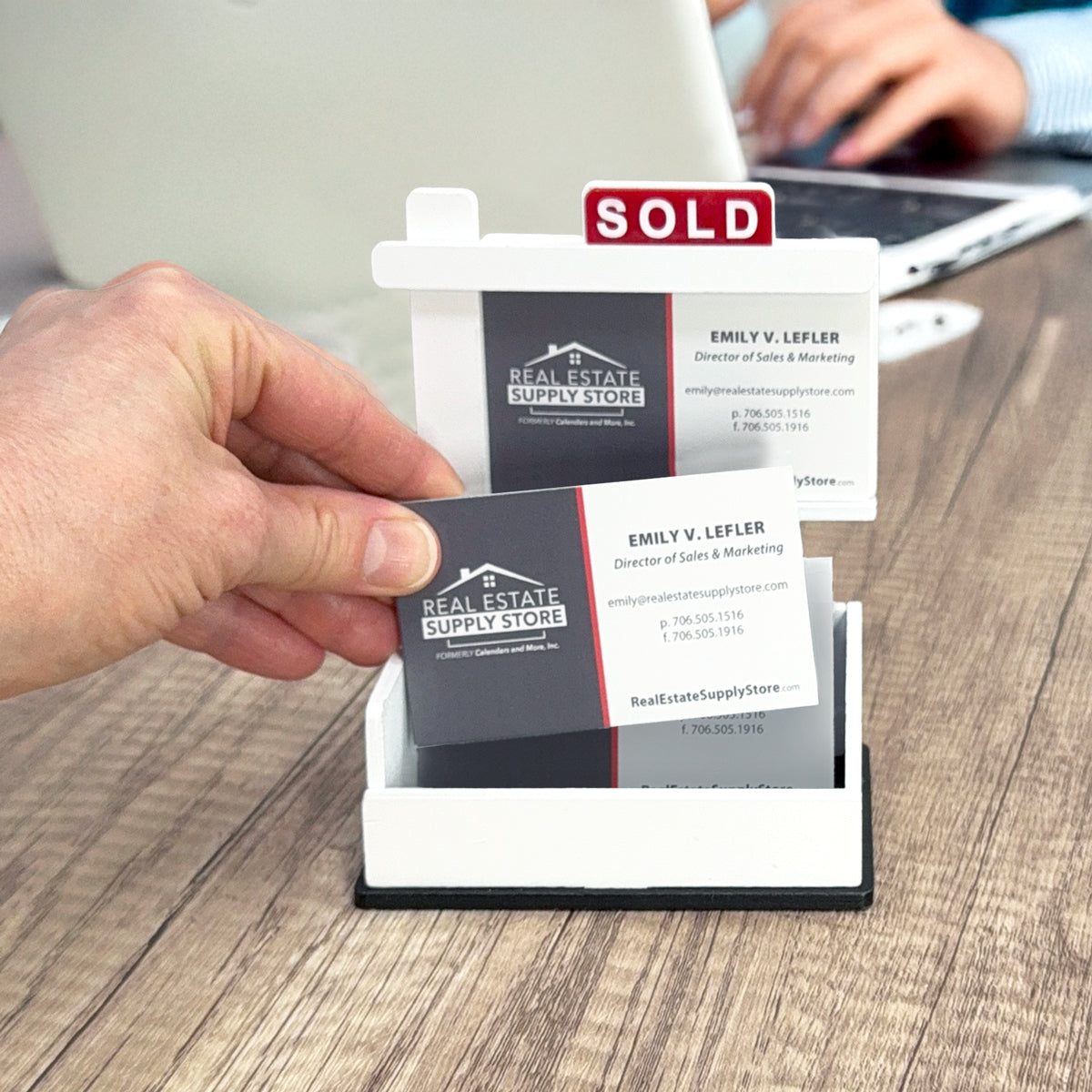 A professional, eye-catching business card display designed specifically for real estate professionals.